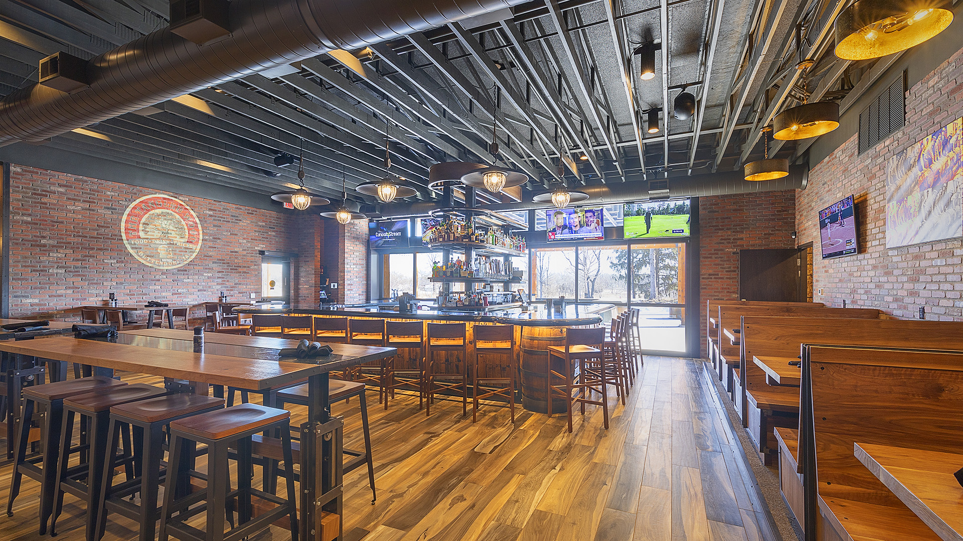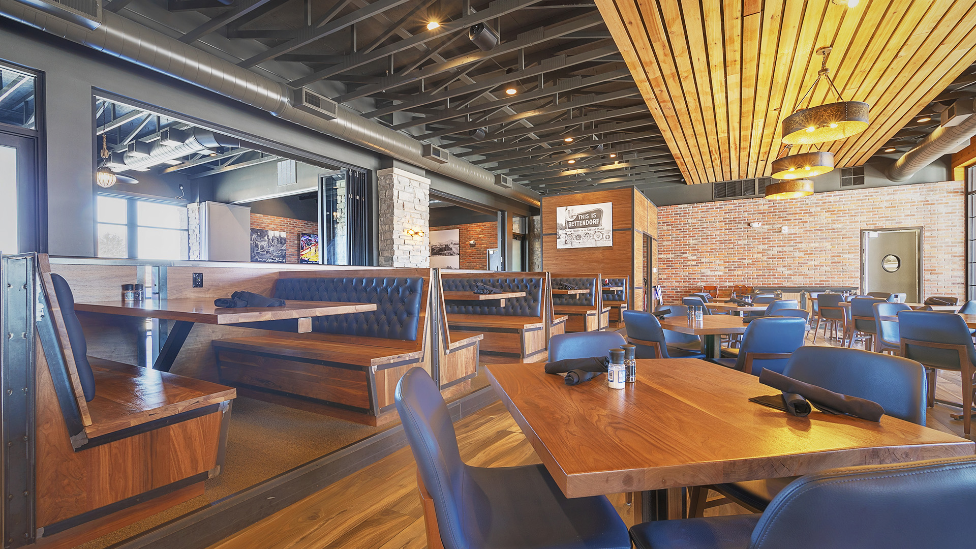 The interior is designed to ensure patrons can enjoy the restaurant’s atmosphere without views of the parking lot and busy Devil’s Glen. The design team selected all finished and designed custom furniture, fixtures, and artwork throughout the building.
